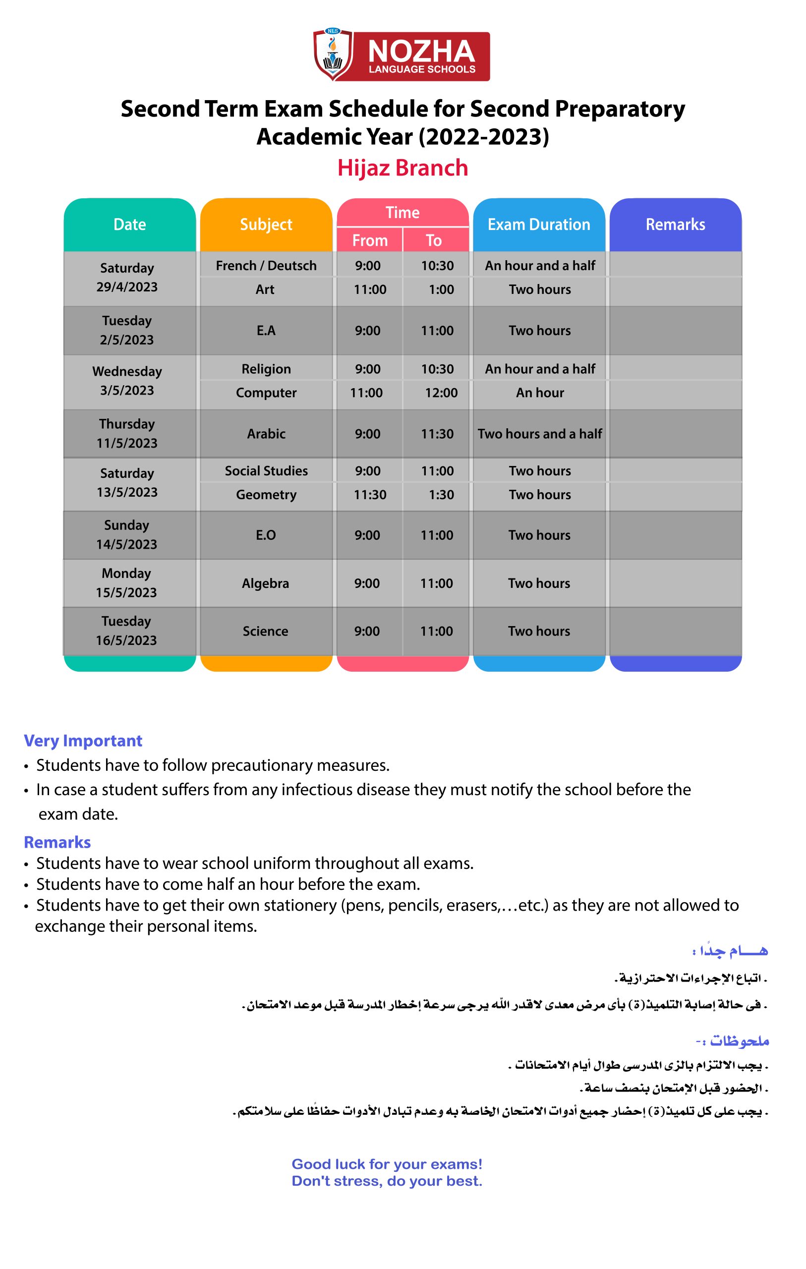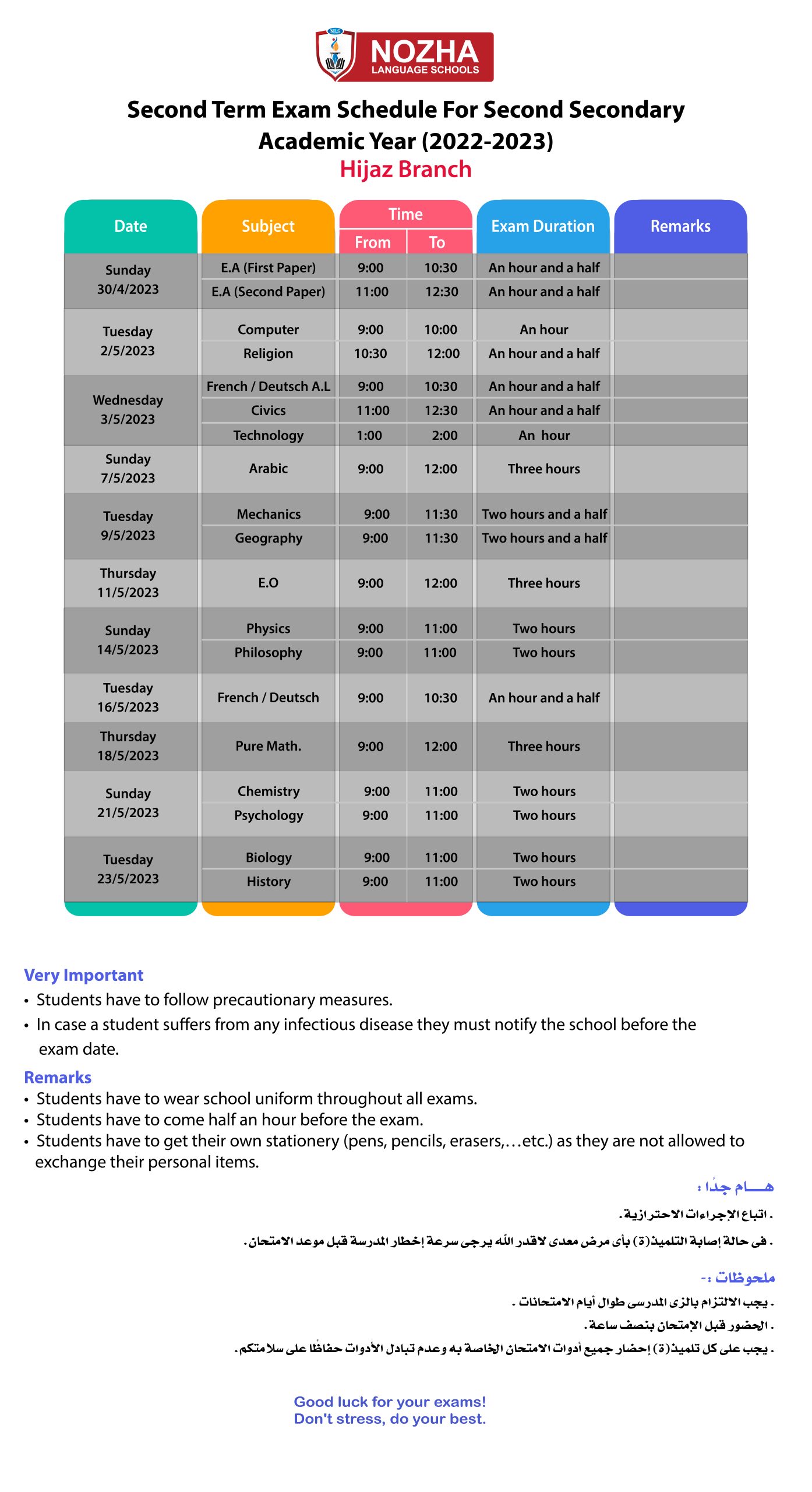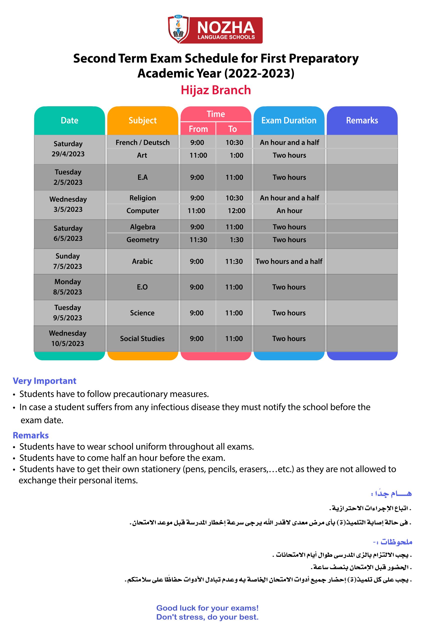 جدول امتحانات الفصل الدراسي الثاني 2022-2023 Khaled2023-04-22T12:02:15+02:00 Share This Story, Choose Your Platform! FacebookXRedditLinkedInWhatsAppTumblrPinterestVkXingEmail