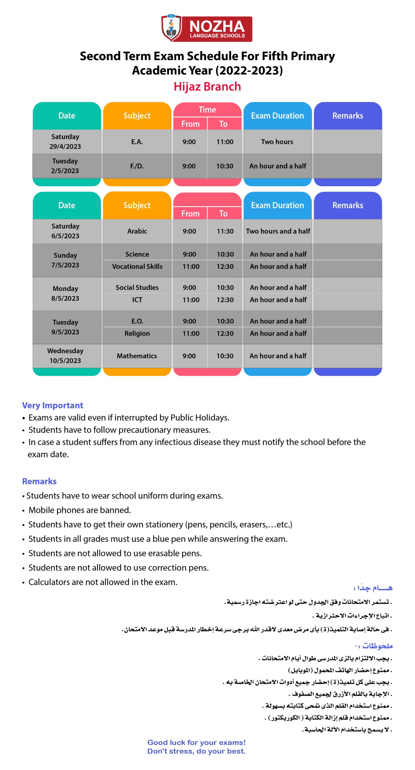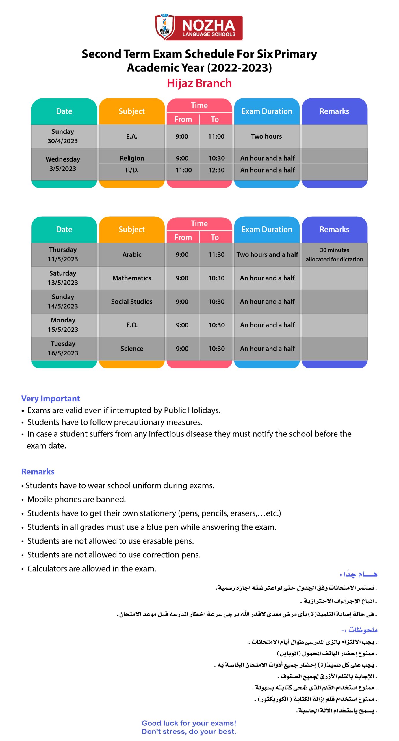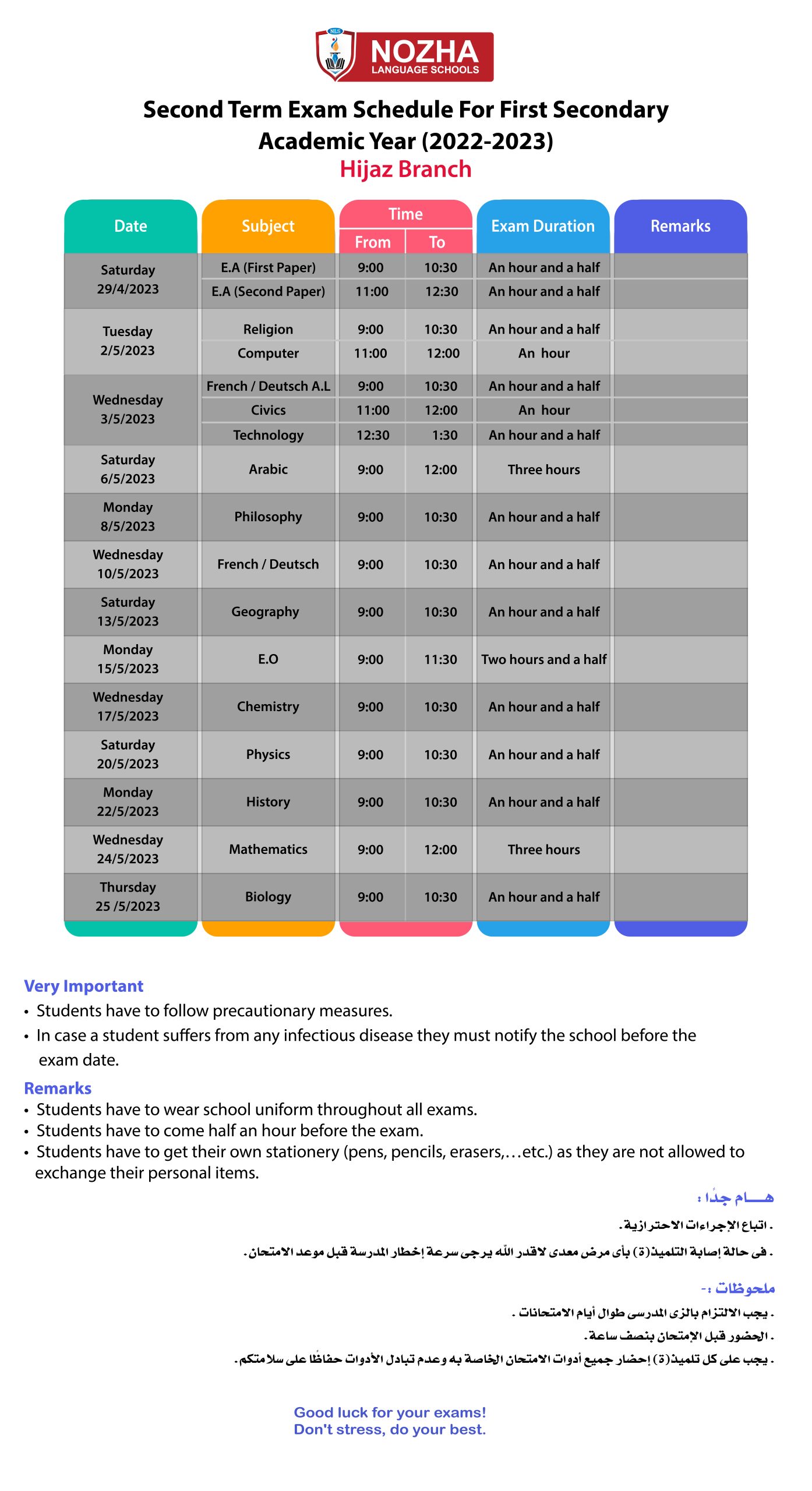 جدول امتحانات الفصل الدراسي الثاني 2022-2023 Khaled2023-04-22T12:02:15+02:00 Share This Story, Choose Your Platform! FacebookXRedditLinkedInWhatsAppTumblrPinterestVkXingEmail